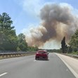Огънят обхваща и двете страни на пътя в района на Побитите камъни