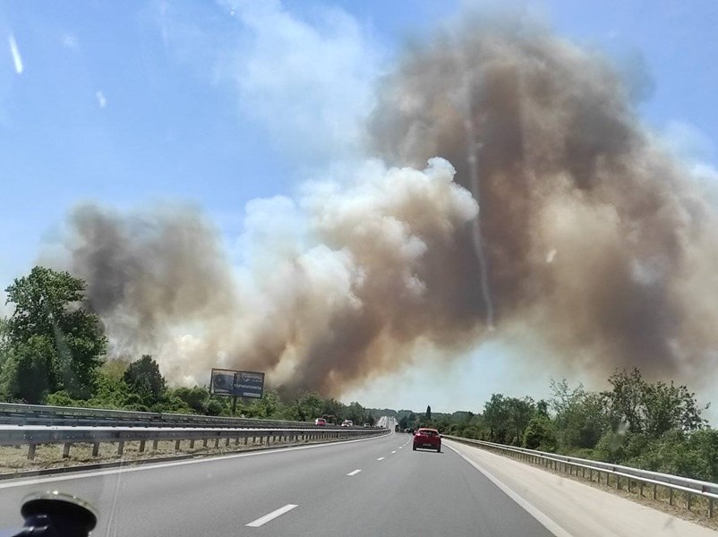 Зрители на NOVA сигнализират за голям пожар в близост до магистрала „Хемус” край Варна. Пожарът обхваща и двете страни на пътя в района на Побитите камъни, което сериозно затруднява движението на автомобили.