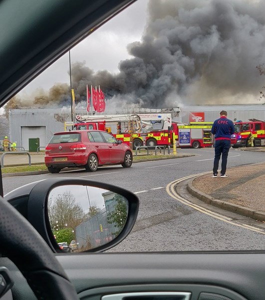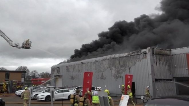 Над 50 огнеборци в продължение на часове гасиха пожар в шоурум на „Тесла“ в град Кроули, Западен Съсекс, съобщава Би Би Си.