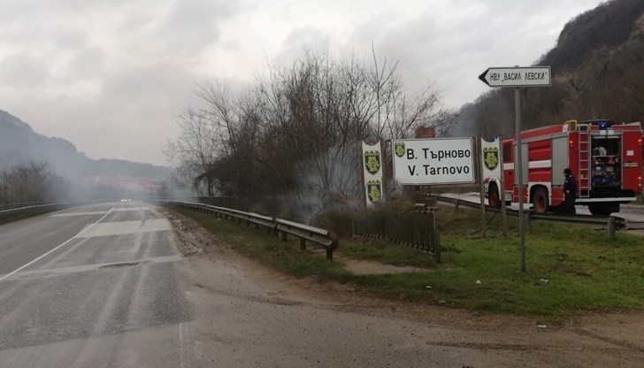 Пожарникари бързо потушиха пламъците, но в района дълго време се носеше гъст дим. Няма нанесени щети на пътното съоръжение.