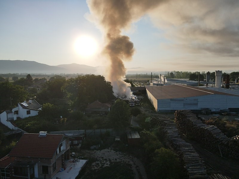 Пожар обхвана двора на завода за дървесина в село Дунавци