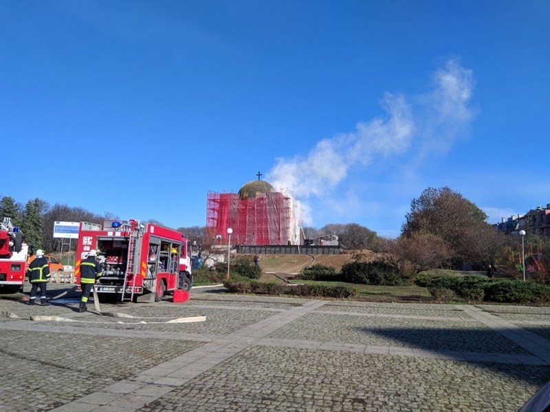 Пожар е избухнал в подкуполното пространство на Пантеона на възрожденците в Русе.