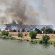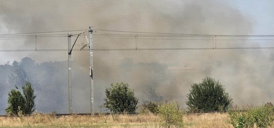 Горят поля и бараки, като пламъците са опасно близо до жилищни сгради. Хвърчат отломки на един километър разстояние, които застрашават както хора и постройки в града, така и плавателните съдове по реката. Задимяването в района е сериозно, а местното население е силно притеснено.