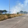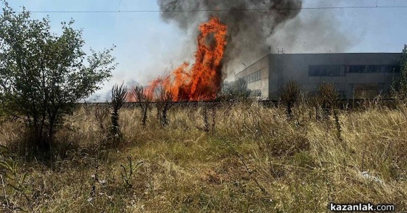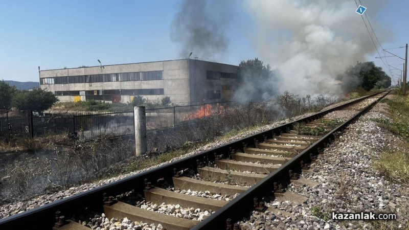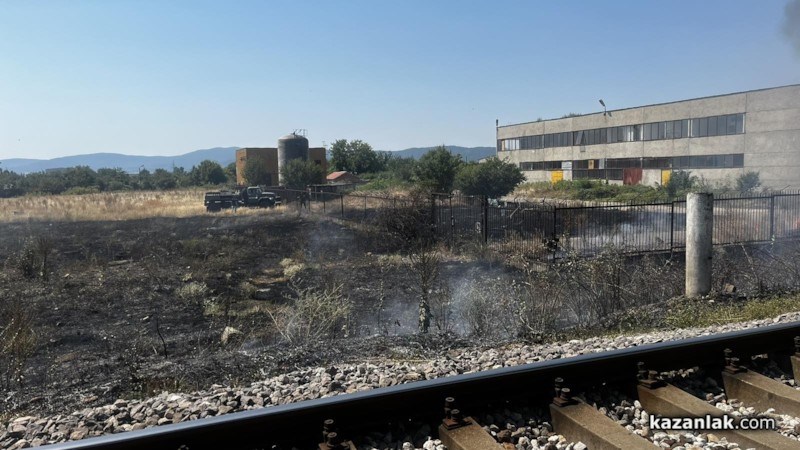 Сухи треви горят в южната част на Казанлък, непосредствено до железопътната линия.