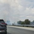 Заради гъст дим движението при километър 141 е пренасочено, а пожарникари се борят с пламъците в района