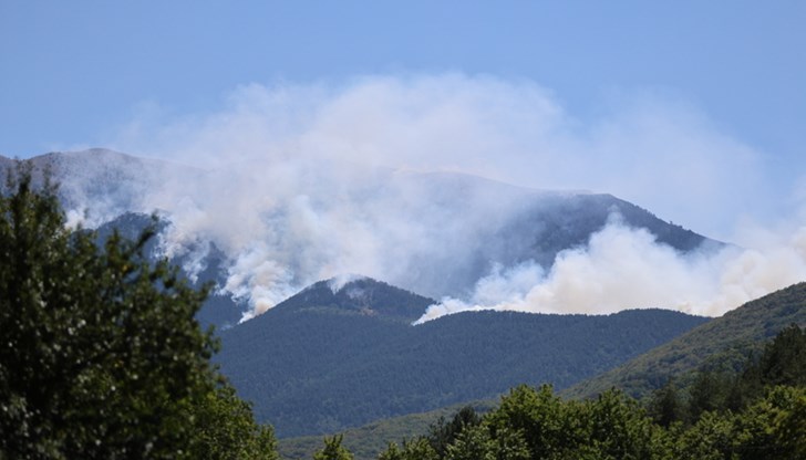 Противопожарни екипи от цялата страна, както и летателна техника от България и чужбина, продължават да гасят пожара в планината "Славянка".