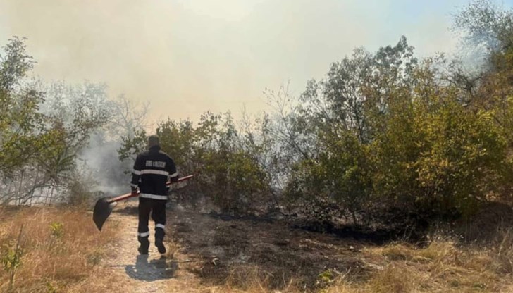 Екипи на пожарната обработват терена срещу ново разпалване на огъня