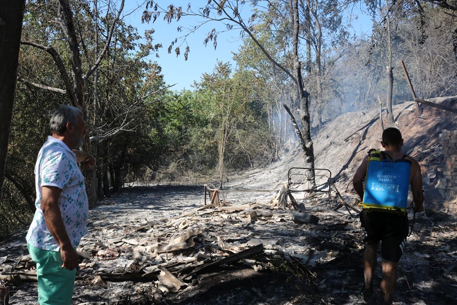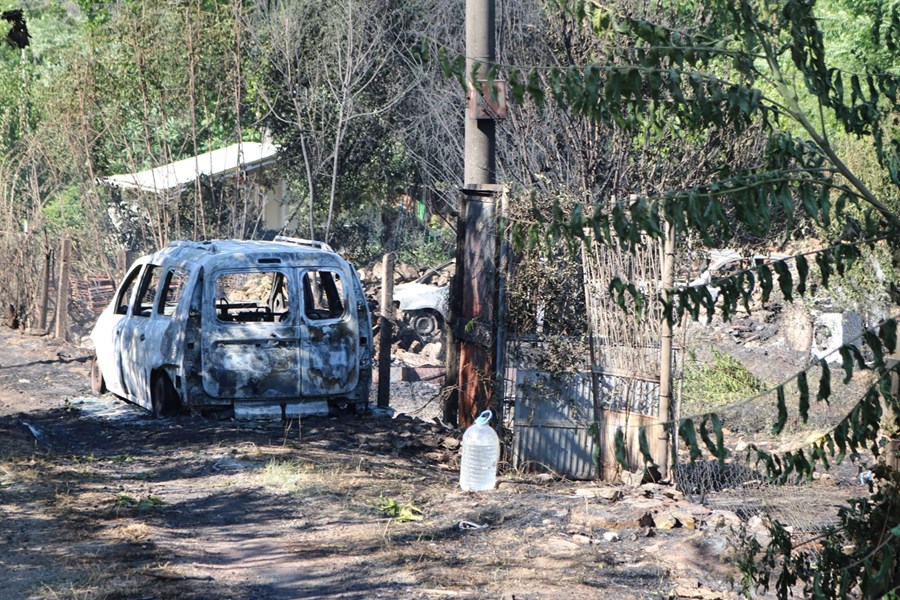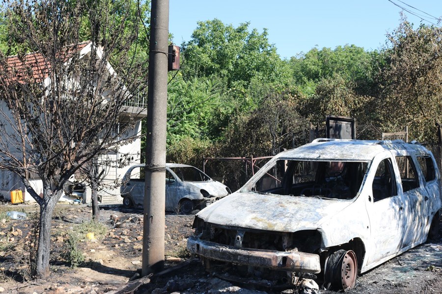 Другият голям пожар - този отдясно на паметника на русофилите в посока от Варна към Русе, доведе до значителни материални щети. Четири автомобила бяха напълно опожарени, а пострадаха и две постройки. Става дума за една вила, чиято фасада е обгорена, и една временна постройка, която е напълно унищожена.