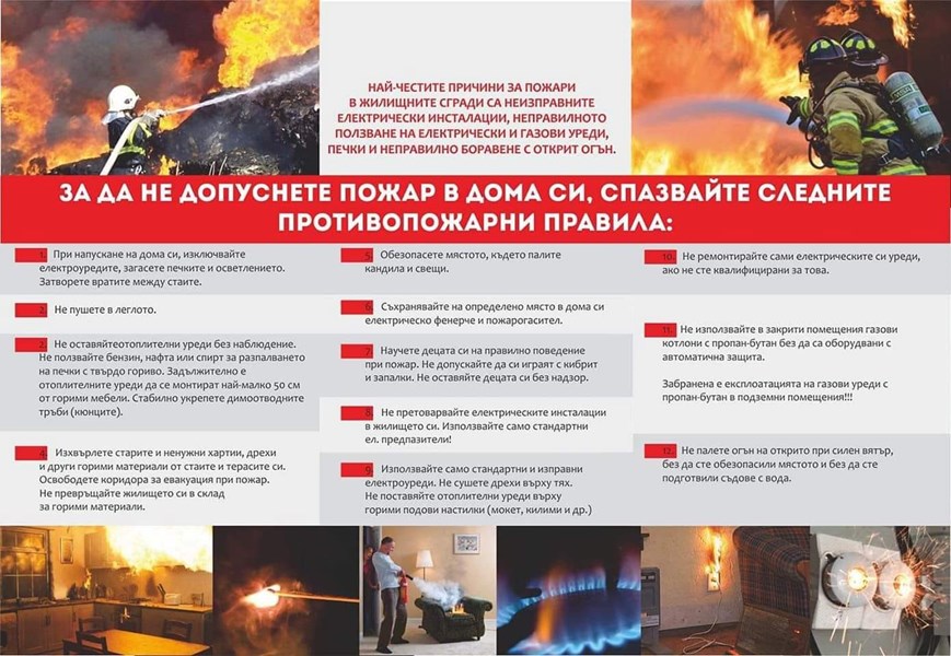 Неизменно изводите от пожарната обстановка през есенно-зимния пожароопасен сезон сочат, че най-често пожарите възникват в жилищно-комуналното стопанство и са вследствие на небрежност и подценяване на мерките за пожарна безопасност.