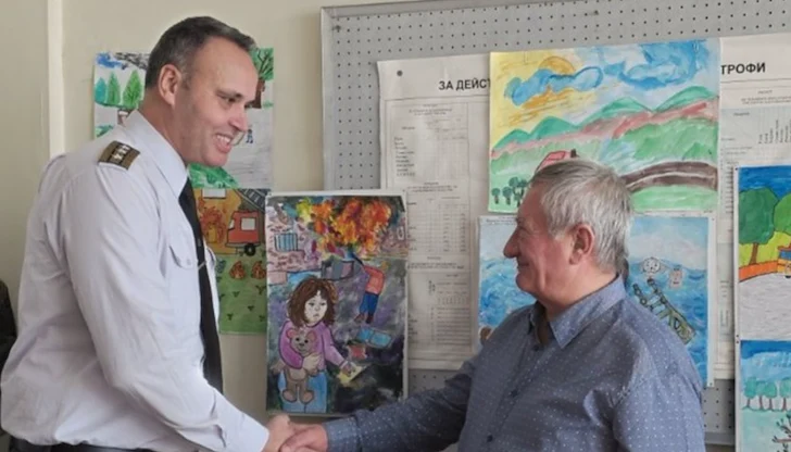 Директорът на пожарната в Русе комисар Светослав Войчев връчи отличия на Байчев в знак на признателност за лоялността и всеотдайността му през годините.