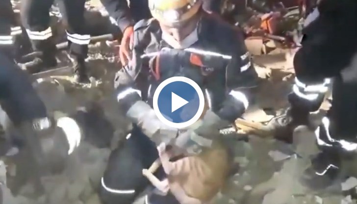 Спасителните екипи дълго време се борят, за да освободят животното от капана на рухнала сграда