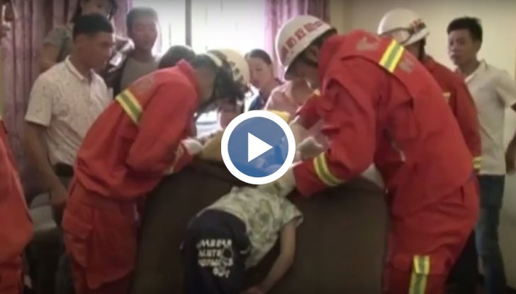 Петима високовалифицирани пожарникари спасяваха китайче, заклещено в диван.