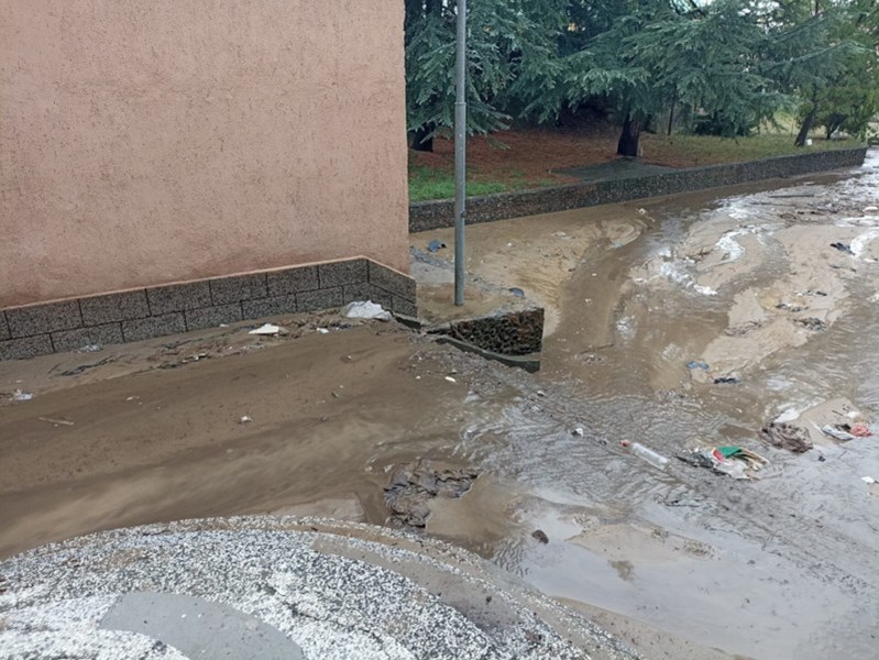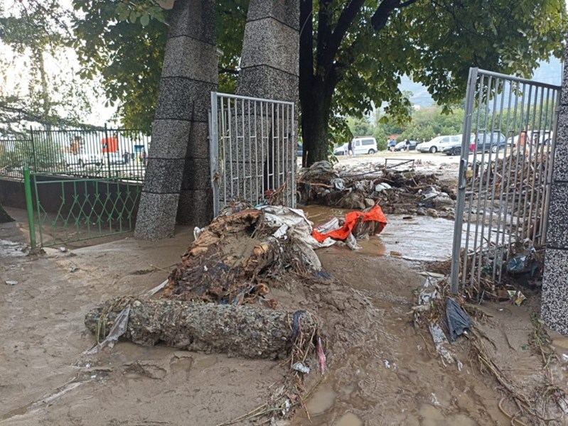 Най-пострадала е гимназията по жп транспорт, чиито току-що ремонтирани стаи са залети. Стихията вкарала в двора цели дънери и бетонни парчета. Електрозахранването в района на гимназията е изключено.