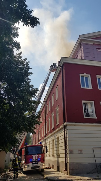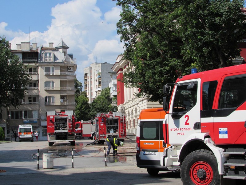 Пожарникарите са спасили работник от горящия покрив на операта в Русе.