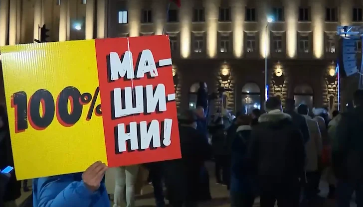 На метри от тях, симпатизантите на "Възраждане" протестираха пред сградата на Народното събрание с точно обратния технологичен скептицизъм. Партията на Костадин Костадинов се обяви категорично против въвеждането на сканиращи устройства за преброяване на гласовете.