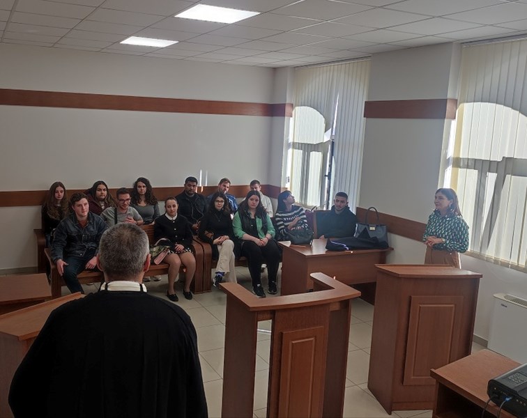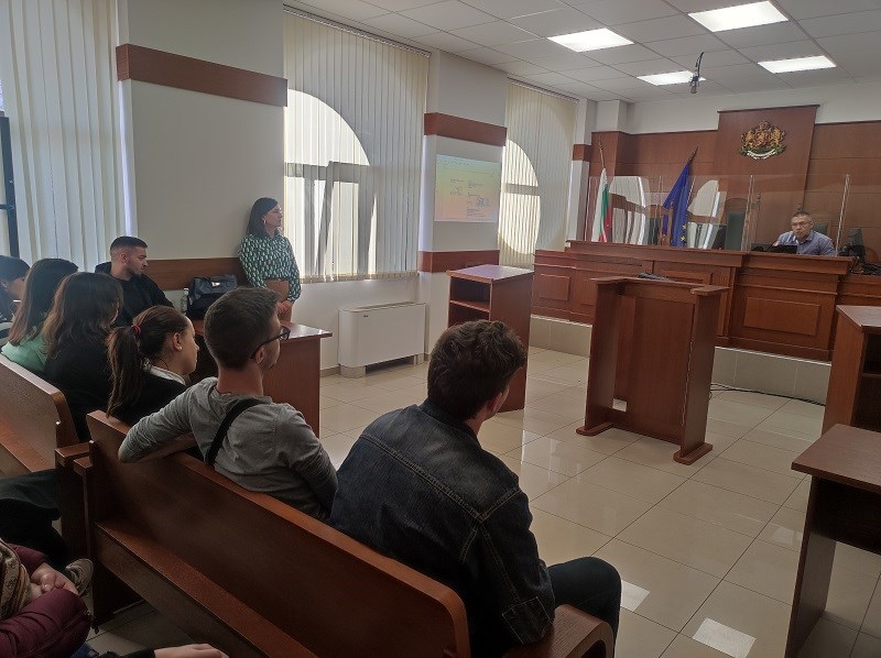 Срещата е част от съвместното сътрудничество на съда с РУ „Ангел Кънчев“ при осъществяването на практическата подготовка на студентите от специалността „Право“.