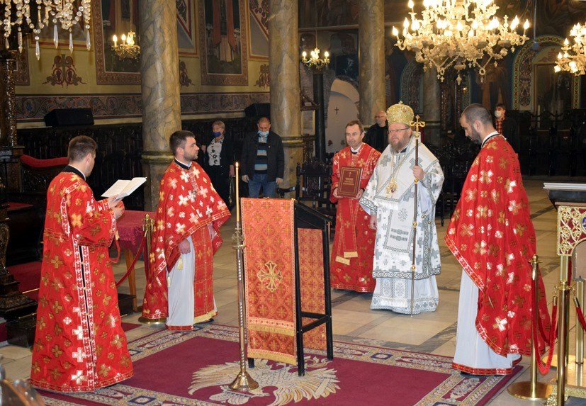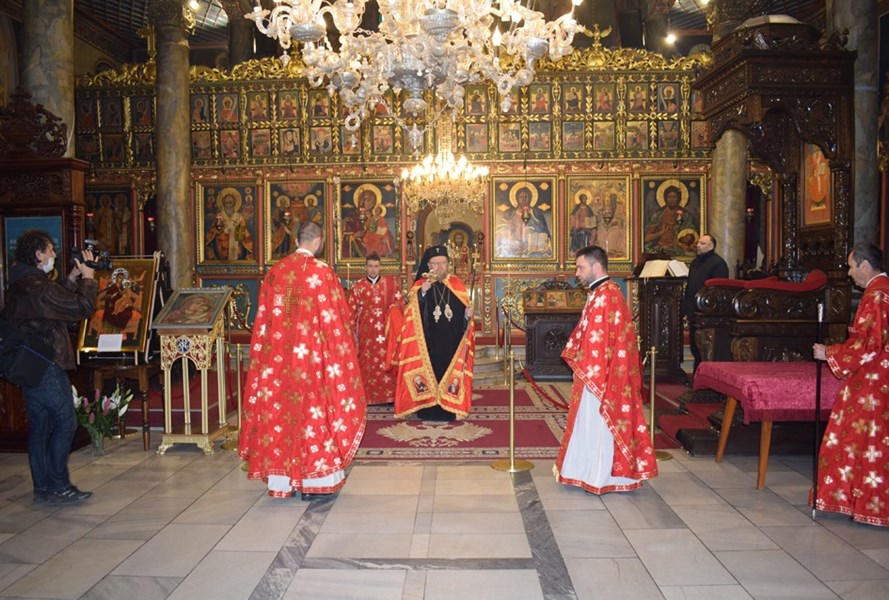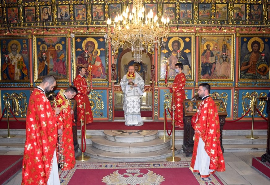 На архиерея съслужиха: прот. Светослав Анчев, свещ. Недялко Димитров и дякон Росен Георгиев. В края на богослужението владиката поздрави всички с празника, пожелавайки Бог да помогне за по-скорошното успокоение на земята от върлуващата епидемия.
