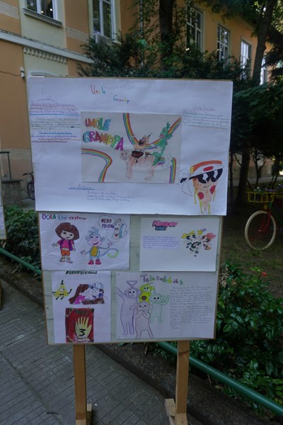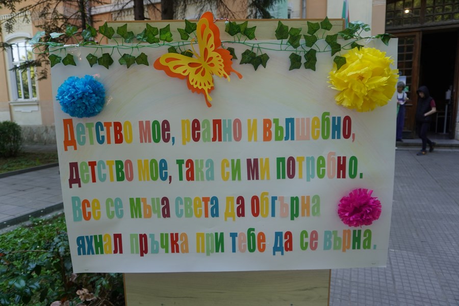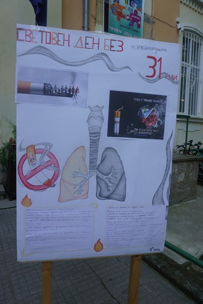 Рисунки отразиха любими герои и цитати от детски книжки, а табло на ученици от 8а клас разкри вредата от употребата на цигари и други вредни вещества.