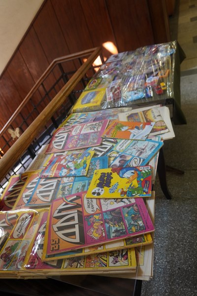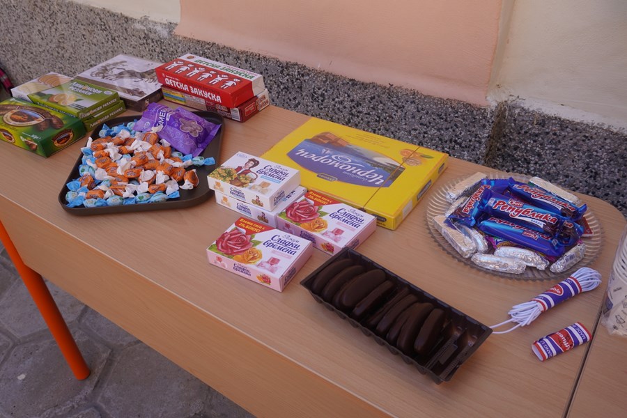 Учителите донесоха играчки и книжки от своето детство и показаха на табло с голям колаж свои детски снимки.