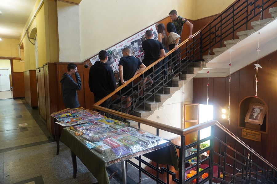 С голям интерес гимназистите разгледаха снимките и се опитваха да открият на тях своите учители. След учебните часове на двора всички заедно играха на ластик, въже, дама, народна топка и рисуваха под звуците на любими детски песнички, съобщиха от учебното заведение.