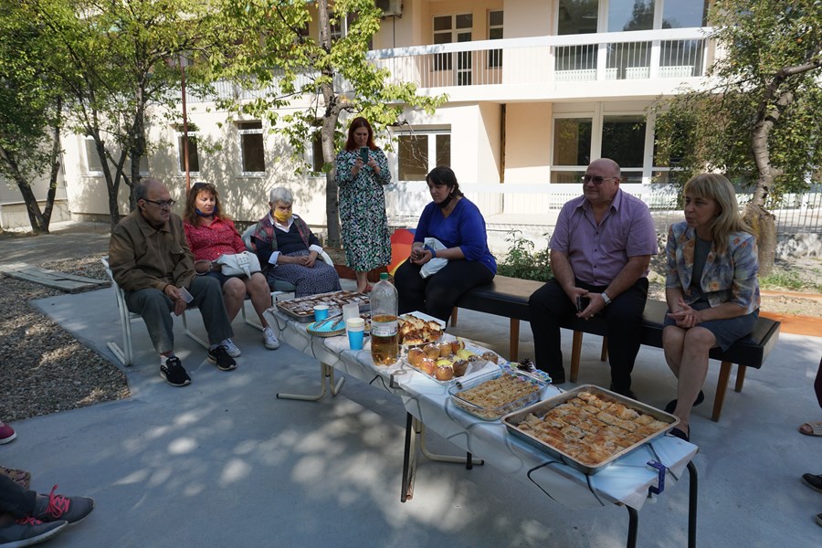 Днес за пореден път потребители на социални услуги по Проект „Разкриване на Център за комплексно обслужване на лица с увреждания, вкл. с тежки увреждания в Община Русе“ се събраха в двора на центъра.
