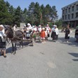 Самодейци пресъздадоха целия цикъл от ритуали по време на жътвата – тръгването и пристигането на нивата, пазаренето с чорбаджията, полагането на ръкойките и трупането на снопите, веселите закачки, които си разменят жътварките, почивката, връчването на брадата на стопанина и разплащането след добре свършената работа.