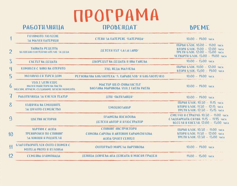 "През 2025 година събитието ще предложи уникална възможност децата да опознаят своите емоции, да потърсят дом на МОЛИВЧО, да изработват куклени герои, да шейкват коктейли и да приготвят домашна паста", споделят организаторите.