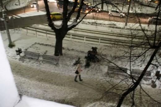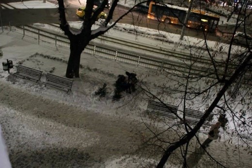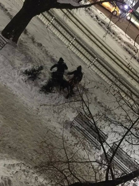 Бабаитите настигнали нищо неподозиращия мъж, който вървял около кръговото движение на Руски паметник и го завлекли в преспите, където го спукали от бой.