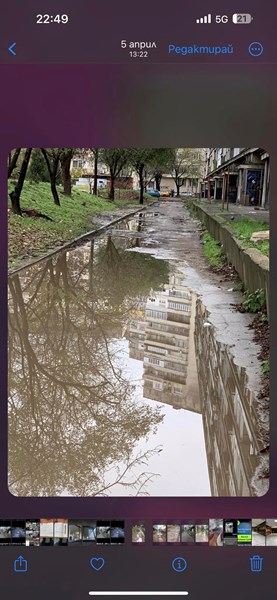 Според жителя, проблемът е налице от много години, като последната жалба е подадена на 23 февруари 2024 година. Въпреки многократните опити да се обърне внимание на ситуацията, до този момент не е постигнато решение. Водата, която се събира на улицата, е довела до улягане на входа, напукване на стъклата и повреда на мазилката вътре в самата сграда. Той подчертава, че въпреки всички плащани данъци от осемте входа на блока, състоянието на улицата остава критично.