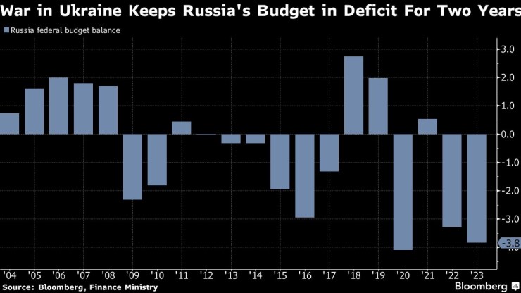През 2023 г. Русия отбеляза фискален недостиг за втора поредна година и очаква тазгодишният недостиг да възлезе на 1,6 трилиона рубли.