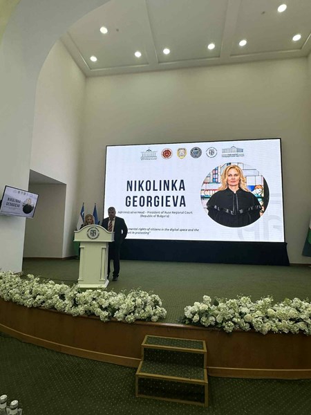 Председателят на Окръжен съд – Русе съдия Николинка Чокоева взе участие в престижна международна конференция в Ташкент, посветена на развитието на конституционализма. Форумът се проведе на 3 декември в Ташкентския държавен юридически университет и бе организиран по повод Деня на Конституцията на Република Узбекистан.