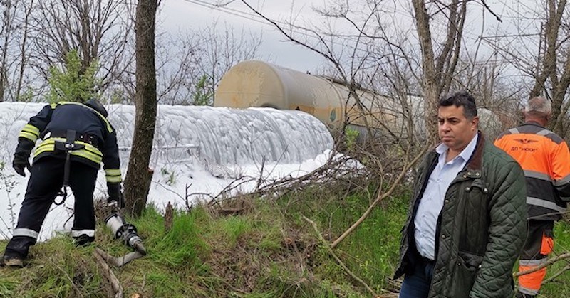 Припомняме, че там тази сутрин малко след 01.00 ч. са дерайлирали четири вагона – 5-и, 6-и, 7-и и 8-и (цистерни с гориво) от товарен влак на частен товарен превозвач. Композицията се е състояла от 28 вагона и се е движила по направление гара Русе разпределителна – Белозем. Причините за инцидента се изясняват. Взрив и пожар не е имало. Пострадали хора също няма. Районът е отцепен от Гражданска защита, като на място пристигна и лично главен комисар Николай Николов. Аварийни екипи на пожарната и НКЖИ продължават да бъдат на терен.