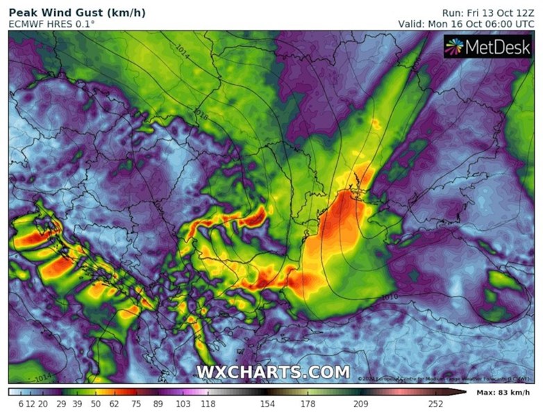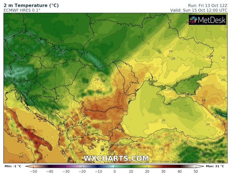 Втората половина на месеца обаче ще започне с осезаемо застудяване. Със силни северозападни ветрове добре очертан студен атмосферен фронт ще понижи температурите до обичайните октомврийски нива. Поривите на вятъра ще се усилят още в неделя привечер със скорост до 80-90 километра в час.