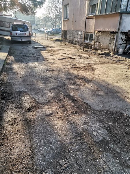 Това сподели във Фейсбук групата "Обществен съвет Русе" инженер Дияна Ангелова и показа разбитата настилка между блоковете "Силистра" и "Тича" в квартал "Родина".