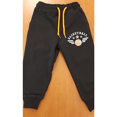 Два черни спортни панталонки за деца от 1 до 4 години, с надписи съответно: "Best ella in the world" и "Basketball", страна на произход Турция.