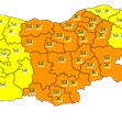 Оранжев код за обилни валежи е обявен за 16 области на страната за 24 октомври, вторник, сочи справка в сайта на Националния институт по метеорология и хидрология.