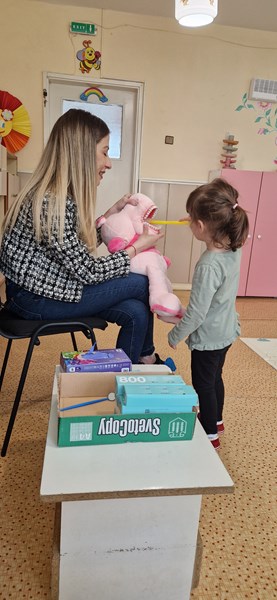 Прегледите бяха извършени от д-р Елизабет Йорданова, която използва специални играчки „Хипо“ и „Пинко“, за да направи процеса по-приятен за децата