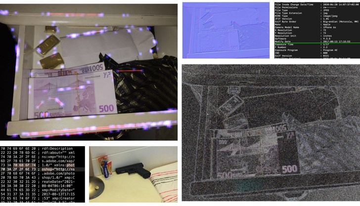 “Върху две от снимките, в близък план е заснето отворено чекмедже – върху едната снимка се вижда поставени в него банкнот с номинал 500 евро и жълти предмети, които наподобяват златни кюлчета и черен на цвят плик със светли ивици, а на втората снимка в чекмеджето се виждат само банкноти с номинал 500 евро”.