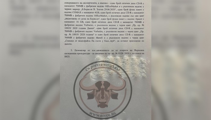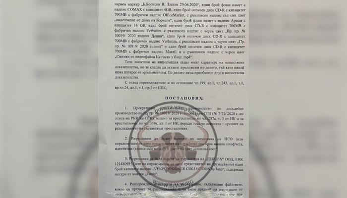 Интересна е и терминологията, използвана от СГП, която подробно описва снимките, кюлчетата, пачките, самите чекмеджета, както и многобройните флашки с аудиозаписи, приложени към делото, сред които “Б. Борисов – В. Златев”.