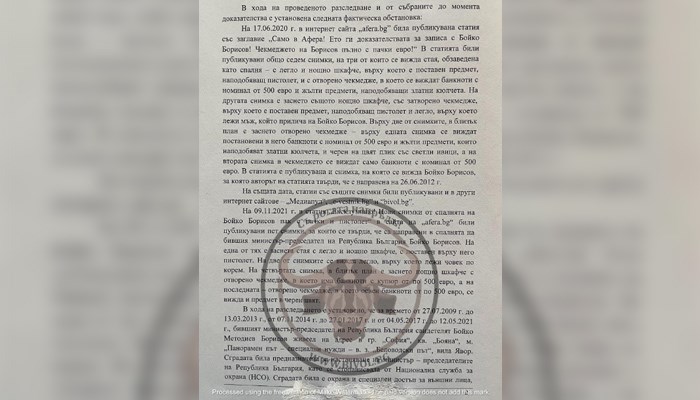 В документа от 33 стр. пише, че снимките с пачките и кюлчетата са се появили в онлайн медиите “Биволъ”, Афера”, Медиапул и др. през 2020 г.