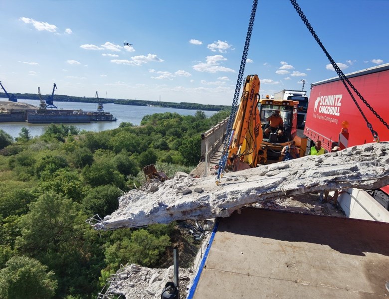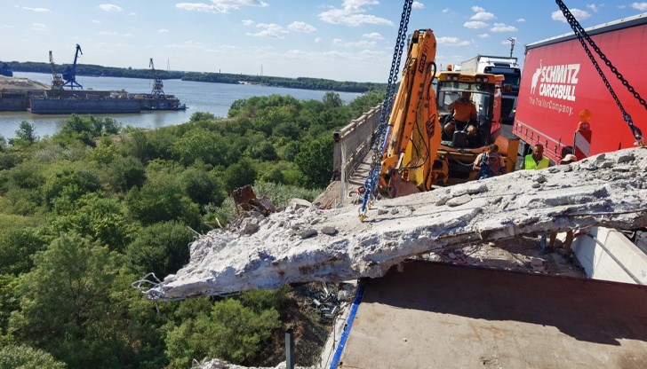 Премахнаха първия стоманобетонен панел на Дунав мост