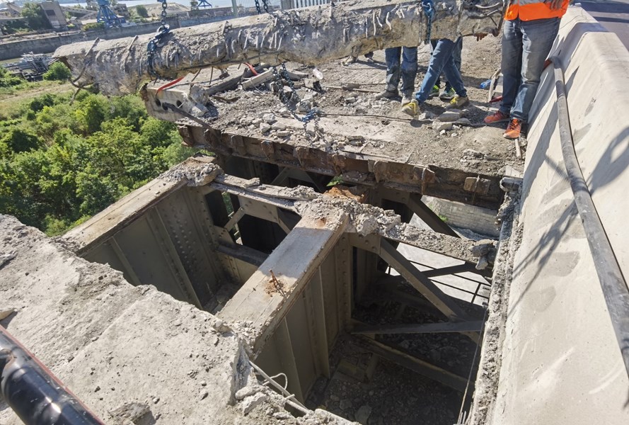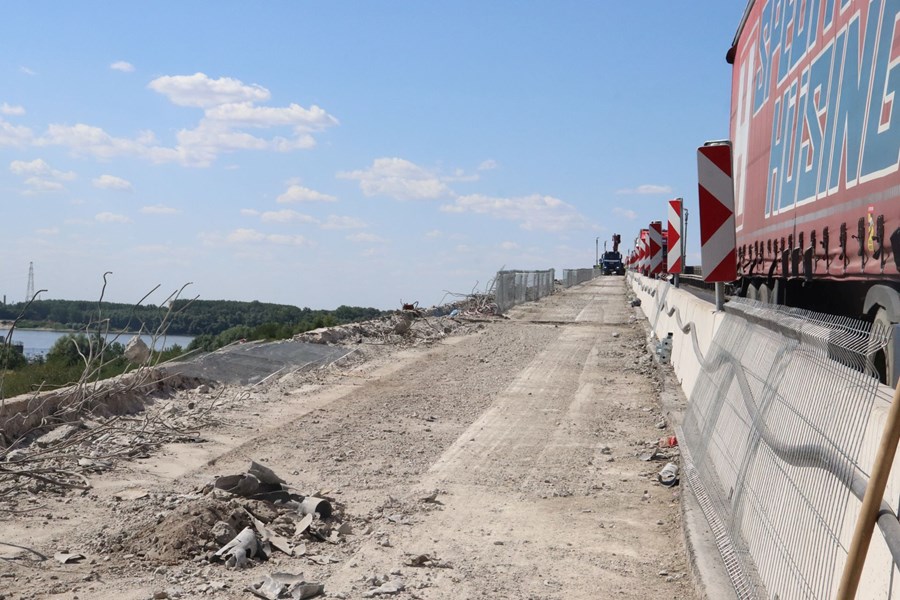 Първият стоманобетонен панел на българския участък от Дунав мост при Русе беше успешно премахнат, като част от мащабния ремонт на съоръжението. Областният управител Драгомир Драганов и евродепутатът от ЕНП/ГЕРБ-СДС Илия Лазаров посетиха обекта, за да се запознаят с напредъка на работите.
