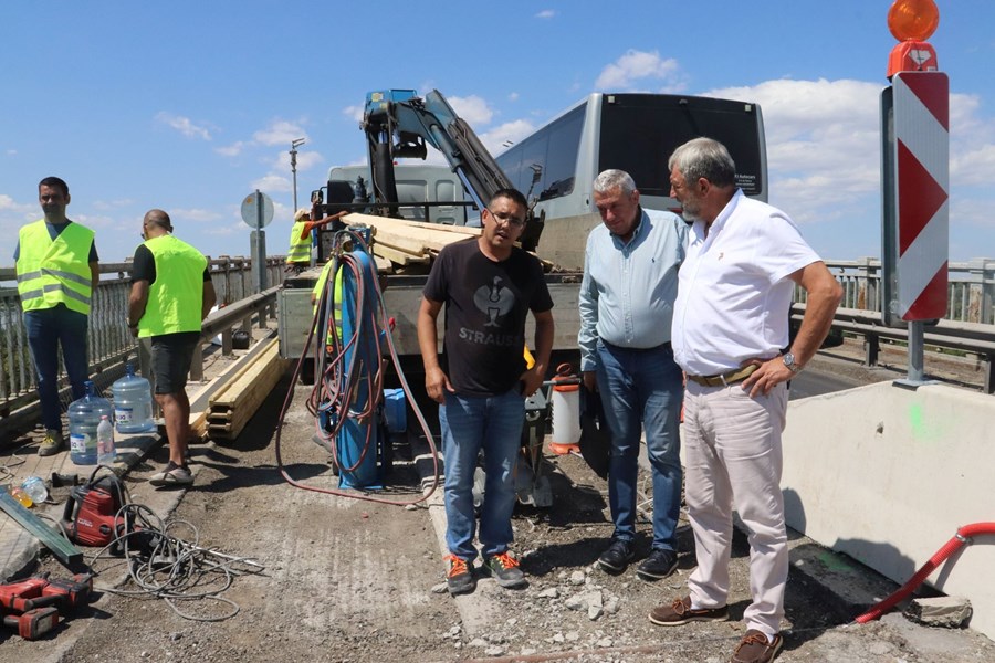 Специално внимание беше отделено на тротоарната конзола, която е разкъртена с цел по-лесно премахване на стоманобетонните панели. Евродепутатът Лазаров и областният управител Драганов станаха свидетели на премахването на първия панел, което е ключова стъпка в модернизацията на моста.
