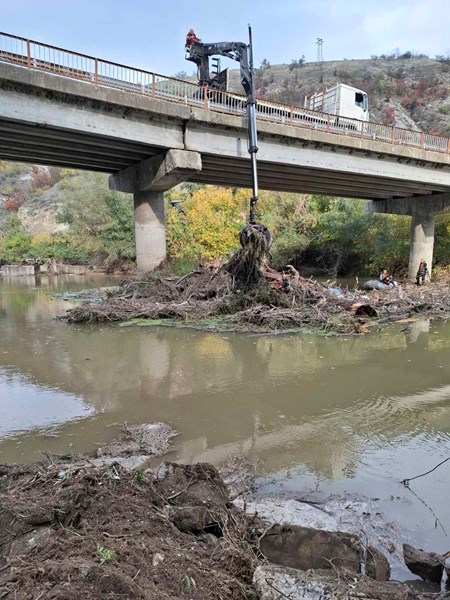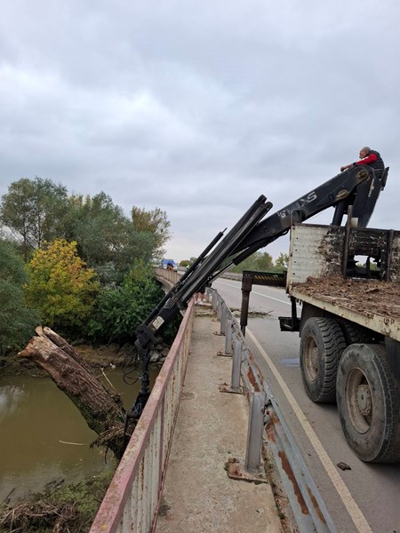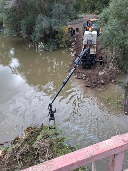 Големи дървета и клони, паднали по течението на Янтра, са заседнали между устоите на мостовото съоръжение и препречват оттока на реката. Те са довлекли със себе си и пластмасови отпадъци, което е наложило предприемането на спешни действия.