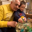 Гордият дядо подари на малкия Бойко аквариум с рибки и му пожела да расте здрав.
