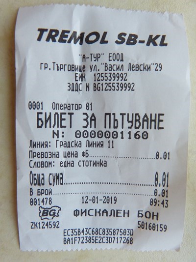 Шофьорите, които продават билетите за тази автобусна линия в Търговище, със сигурност ще се затруднят, ако някой пътник се опита да плати с по-едра банкнота.