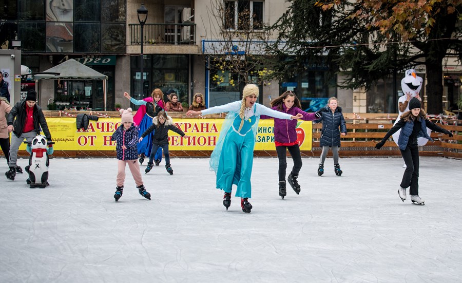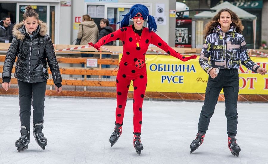 Любимите на децата герои от приказки и анимационни филми ще оживяват на Ледената пързалка в Русе всяка събота от 11:30 часа.
