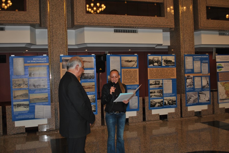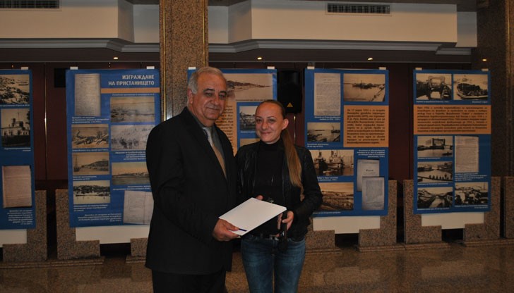 Тя връчи на изпълнителния директор инж. Петър Драгошинов поздравителен адрес от името на кмета Пламен Стоилов, в който се казва: „За мен е удоволствие да Ви поздравя за откриването на изложбата с архивни и съвременни кадри, организирана по повод 150-тата годишнина от създаването на Пристанище - Русе.