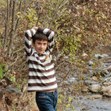1. Момчето е със със сиво шушлякво яке, под якето има черна фланелка, а под нея синя такава.
