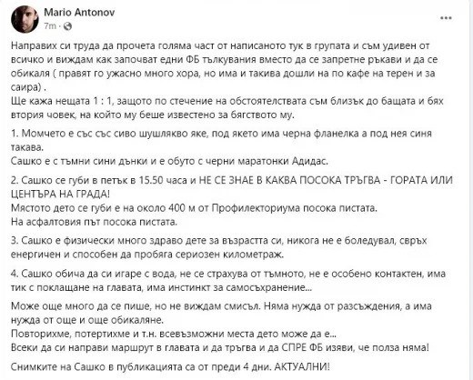 Марио Антонов публикува актуални снимки на изчезналото дете